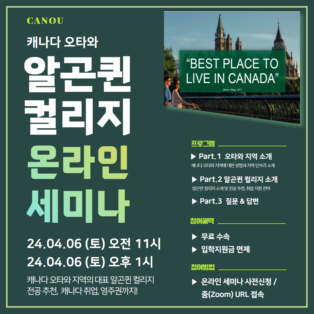 캐노유유학원에서 오타와 알곤퀸 컬리지 세미나 참여신청!