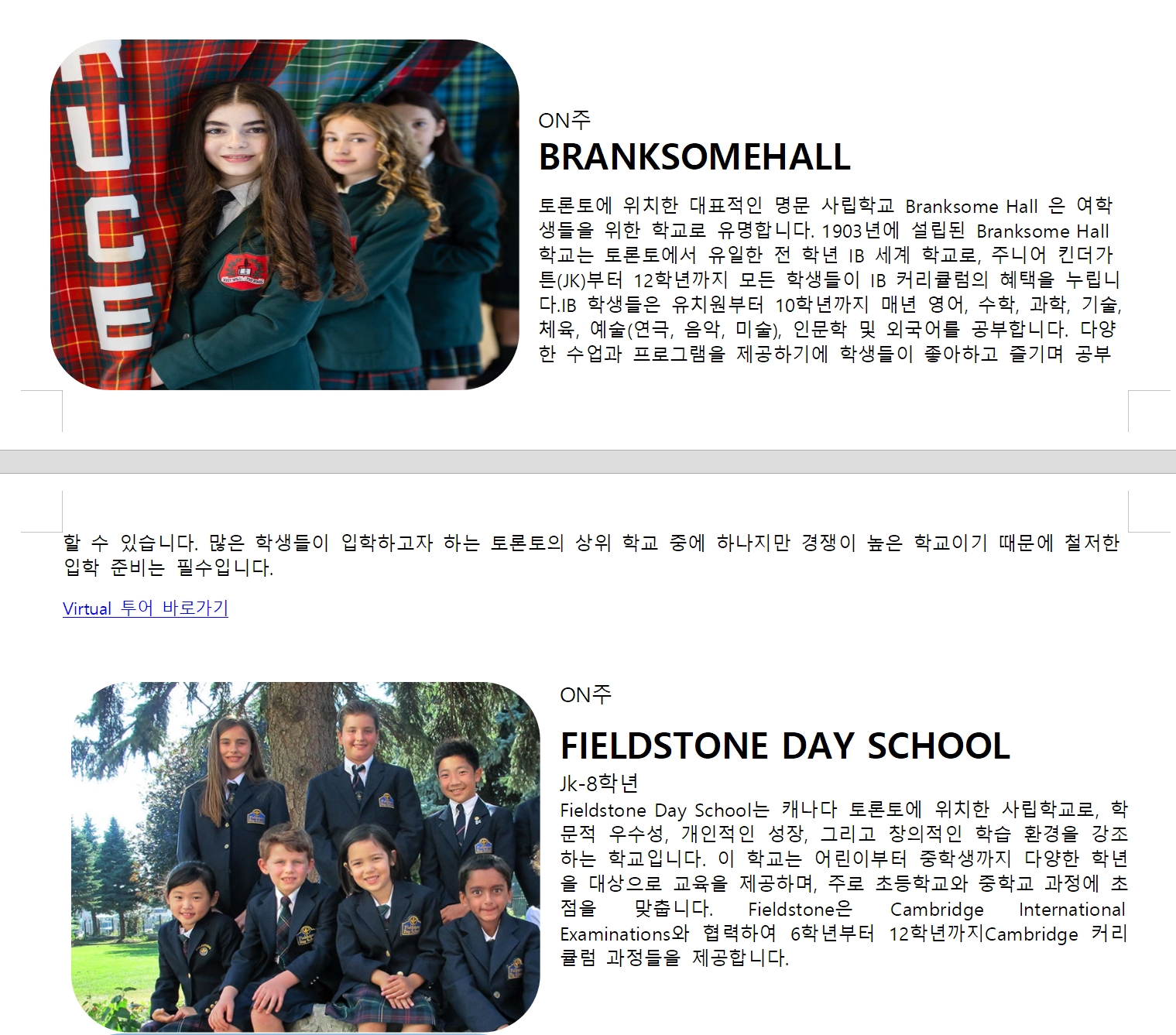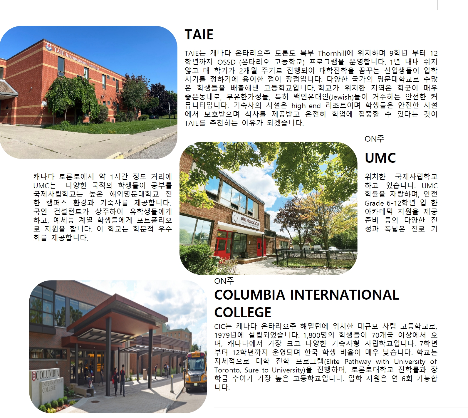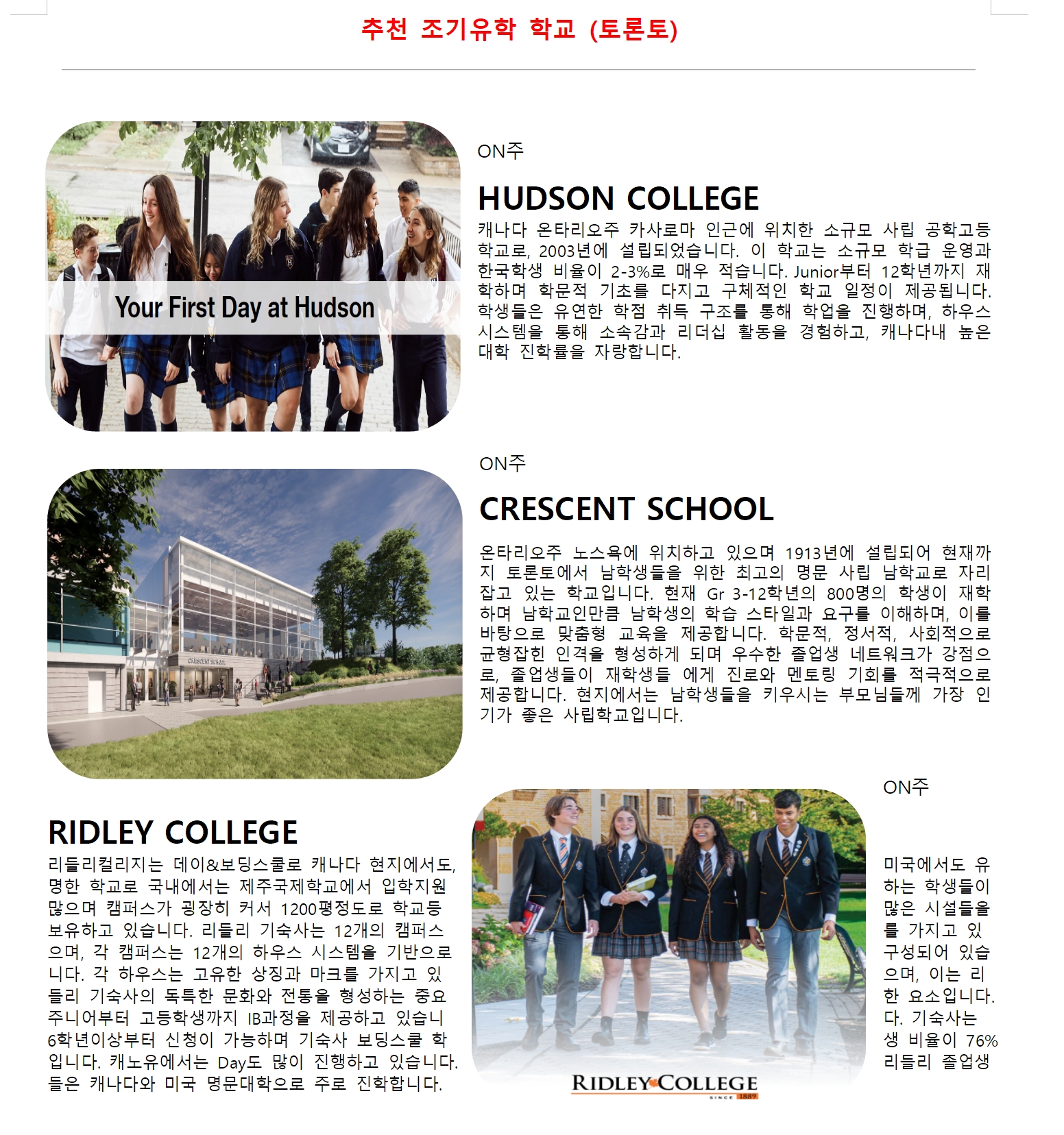 캐나다 명문사립학교 25년 9월 입학수속중!