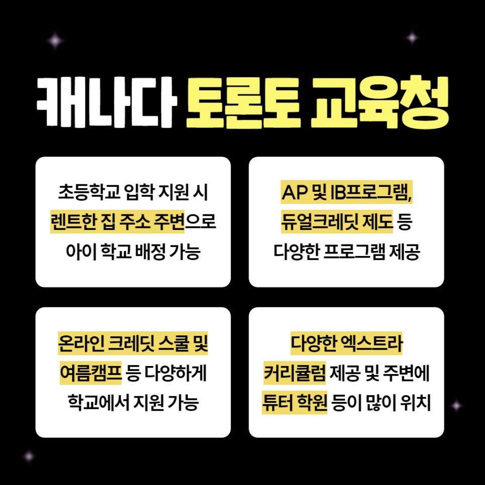 토론토교육청은 7월 1일부터 25년 2월 입학 지원을 받기에 지금이 적기라고 할 수 있습니다 !
