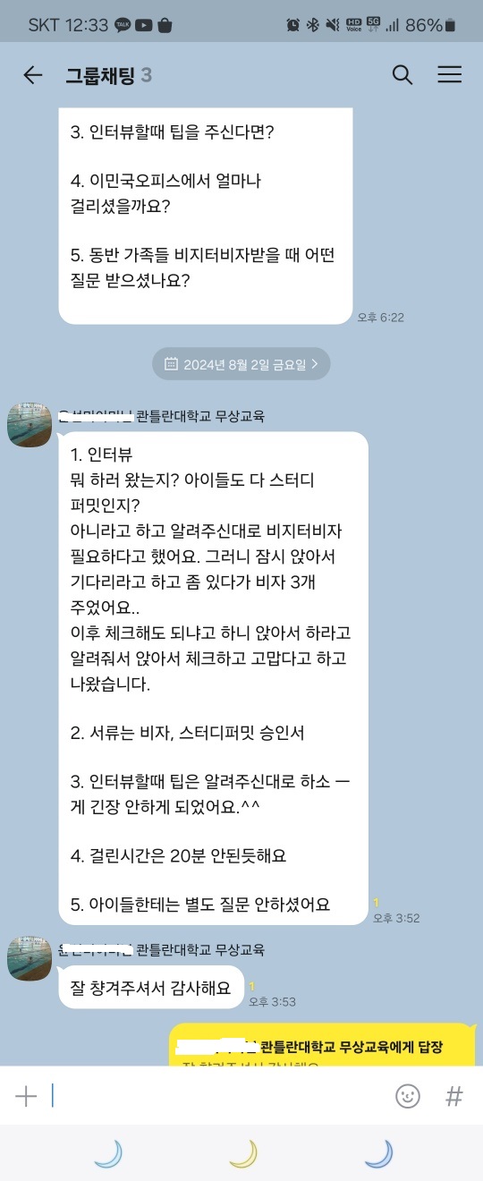 "t": "Q. 캐노유 유학원에서 지원 준비를 함께 하셨는데, 어떤 도움을 받으셨었나요?"