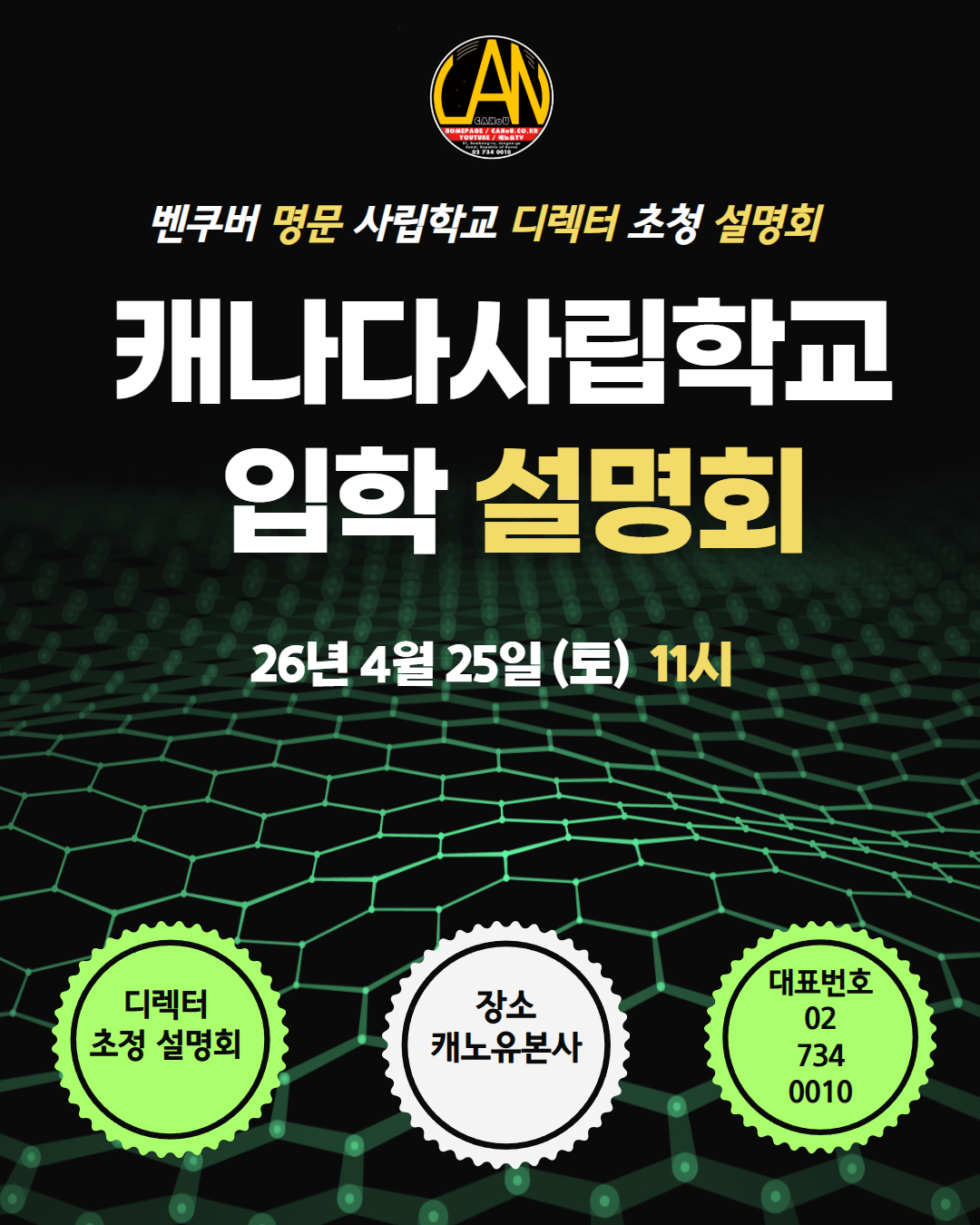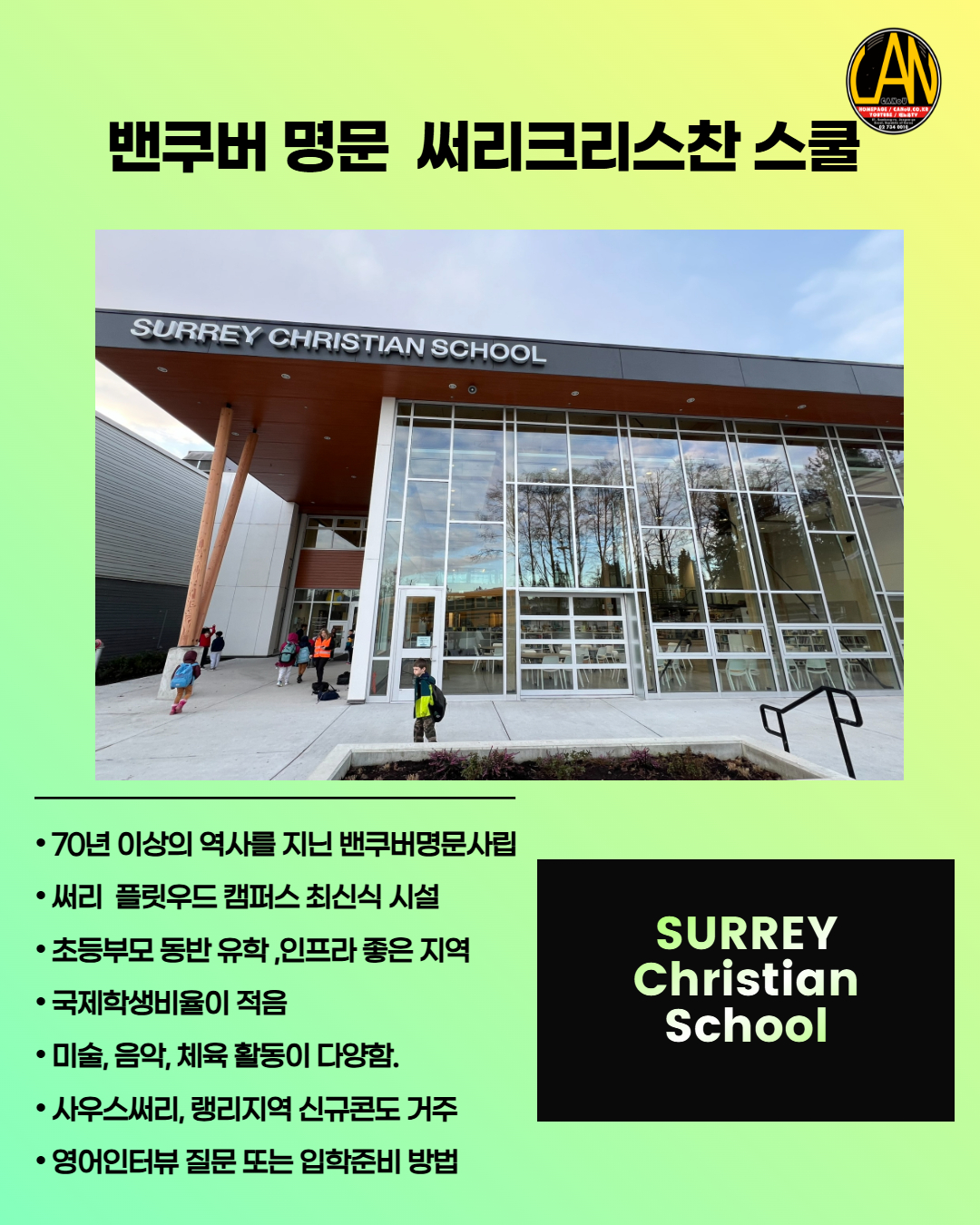 ???? 캐나다 사립학교 입학 설명회 OPEN 벤쿠버 명문 사립학교 ✨ 디렉터 직접 초청 설명회 ???? 4월 25일 (토) 오전 11시 ???? 캐노유 본사 ???? 설명회 핵심 혜택 ✔ 써리크리스찬 인터뷰 TIP ✔ 명문대 입시 전략 1:1 지원 ✔ 수속비 50% 할인 혜택 ✔ 선착순 모집 (마감 임박) ???? 학교소개 Surrey Christian School (써리 크리스찬 스쿨) ✔ 70년 전통의 벤쿠버 명문 사립 ✔ 최신 시설 (Fleetwood 캠퍼스) ✔ 초등 자녀 동반 유학 추천 지역 ✔ 국제학생 비율 낮아 영어 환경 우수 ✔ 미술·음악·체육 등 액티비티 다양 ✔ 사우스 써리 / 랭리 신규 주거지역 인접 ???? 이런 분들께 추천 ✔ 초등/중등 자녀 캐나다 유학 고민 중 ✔ 명문 사립학교 입학 전략 궁금하신 분 ✔ 영어 인터뷰 및 입학 준비 방법 알고 싶은 분 ✍ 참여 방법 ???? 인스타 프로필 링크 통해 구글폼 신청 ???? @canou__official ☎ 문의 02-734-0010 사전예약제:https://forms.gle/4VKyKDaeqsoTMCoH7
