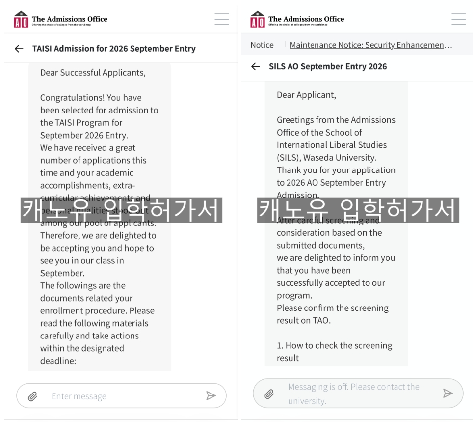 [CANoU] L ** 학생 - 와세다대학교 SILS &TAISI 전공 입학오퍼 _축하합니다.