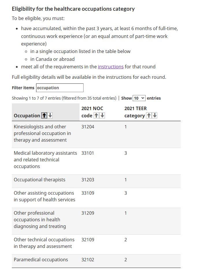 2) 이민 점수제 선발 영역에서 의료보건 카테고리 (healthcare occupation category) 선발이 많은 선발 인원에 대해 비교적 낮은 CRS 점수로 인비 받는 중입니다.